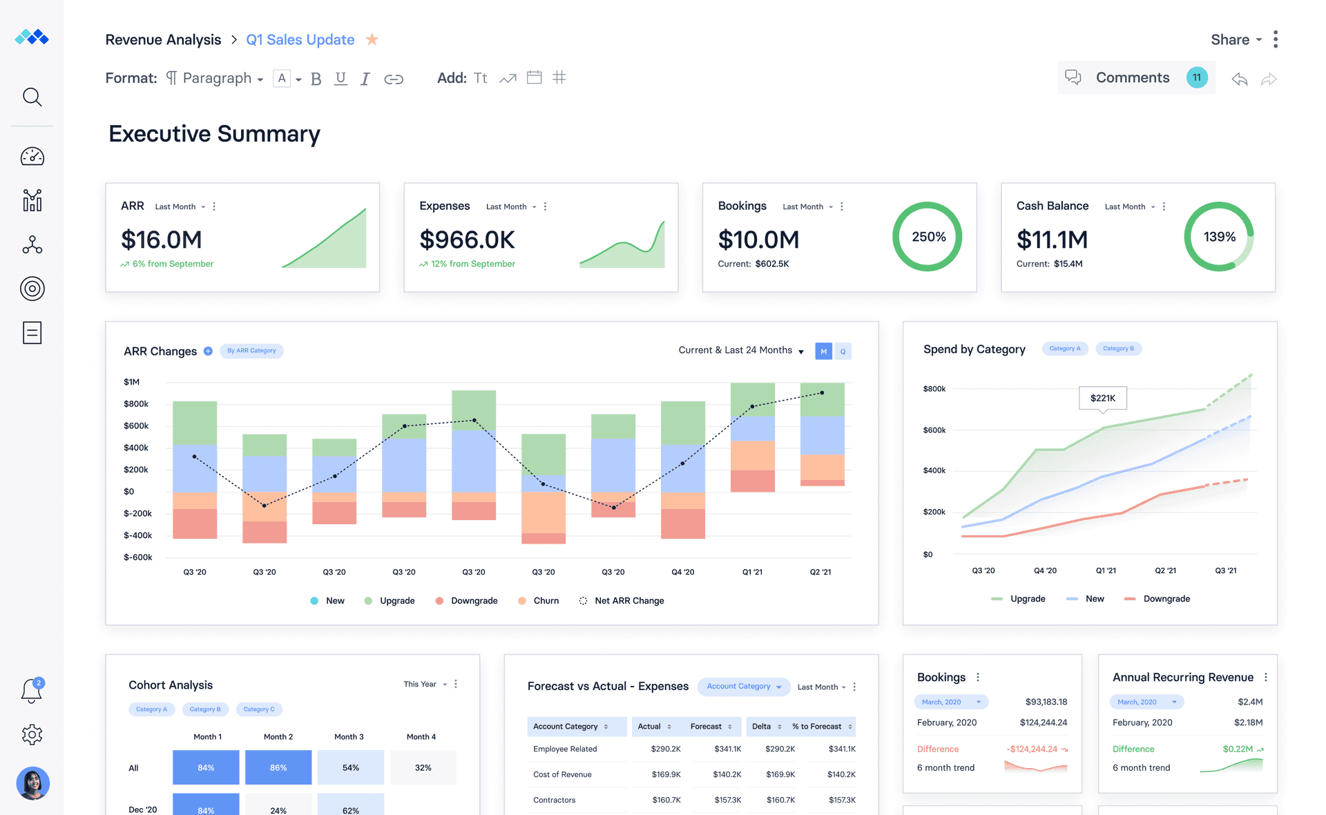 Share real-time insights with key stakeholders and create department or executive views for monthly reporting, due diligence analysis, and go-to-market analysis.