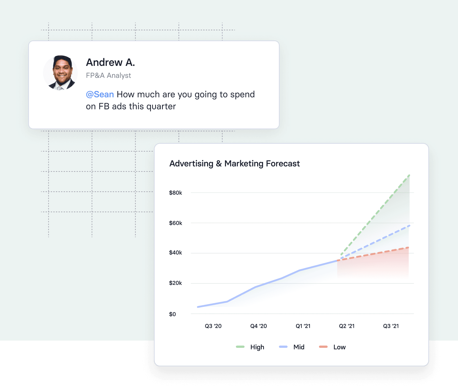 Model potential outcomes based on real-time metrics and projected growth strategies, while collaborating with teams across your business so everyone can act with informed confidence every time.