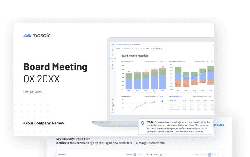 Minutes today can unlock millions tomorrow. Mosaic enables you to easily share your growth plans, develop a fundraising strategy, and automate investor reporting packages.